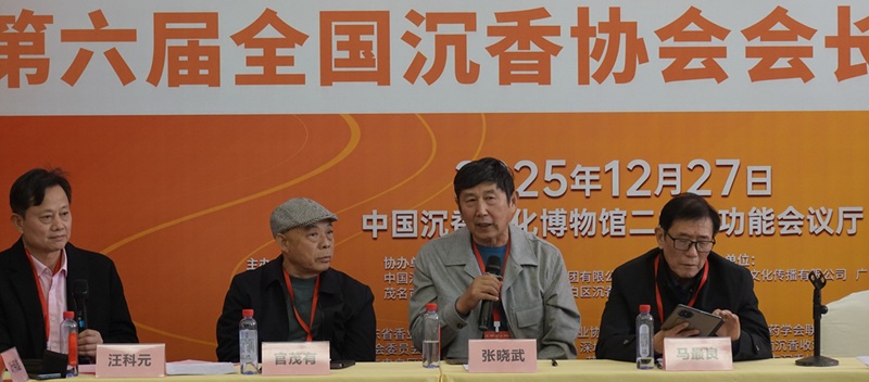 圆桌由万凯(资深主持人、东莞市沉香协会理事)主持。肖艳华(东莞市沉香协会会长、广东香城集团有限公司总经理)指出,文化 IP 与品牌故事是沉香走向更广阔市场的重要抓手,产品不仅要“卖出去”,更要“走进去”;张承良(广东省委党校文史教研部教授、广东省社会科学界联合会主席团成员、广东南方软实力研究院执行院长)从文化软实力与国家叙事角度强调,沉香文化创新需要嵌入更宏阔的文化战略,才能形成可持续的高附加值;谢利发(茂名市电白区沉香联合会会长、广东利珠沉香科技有限公司董事长)结合电白实践,强调以标准化、产业组织能力与政策协同破解“内卷”;戴瑜(广东省香业协会执行会长、广东新会小冈香会会长)指出,“新质生产力”将深刻影响从种植端到消费端的效率与信任结构;韦志雄(广西沉香协会会长、玉林老字号桂之香品牌创始人、广西壮族自治区非物质文化遗产“北流沉香线香制作技艺”第四代代表性传承人)分享广西沉香面向东盟市场的出海实践;黄昱(福建省天然香文化协会常务副会长、福建省燃香产业标准化技术委员会委员)则从标准与高端工艺角度,强调以技术规范提升辨识度与价值稳定性。