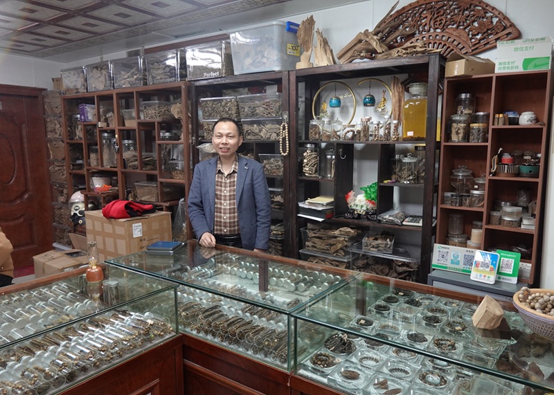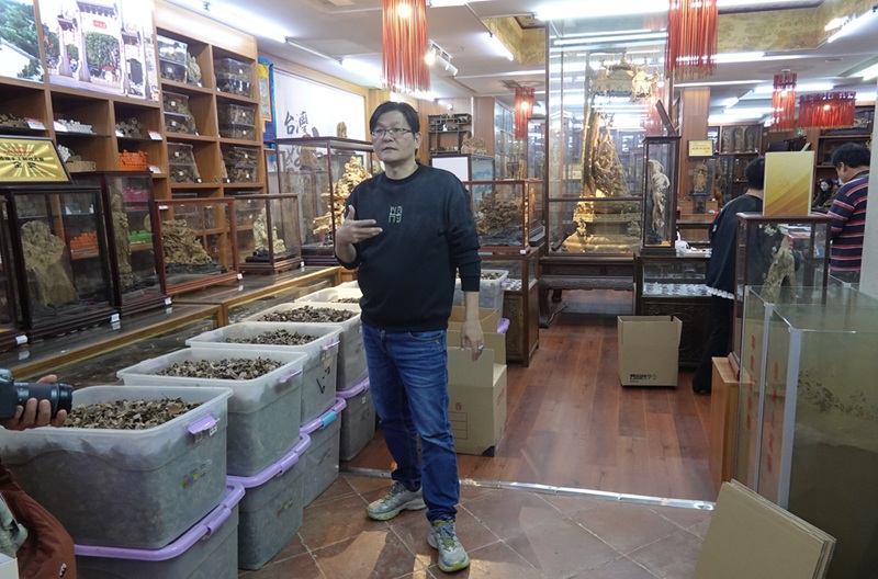三亚沉香协会会长张树臣和沉香商家交流 。