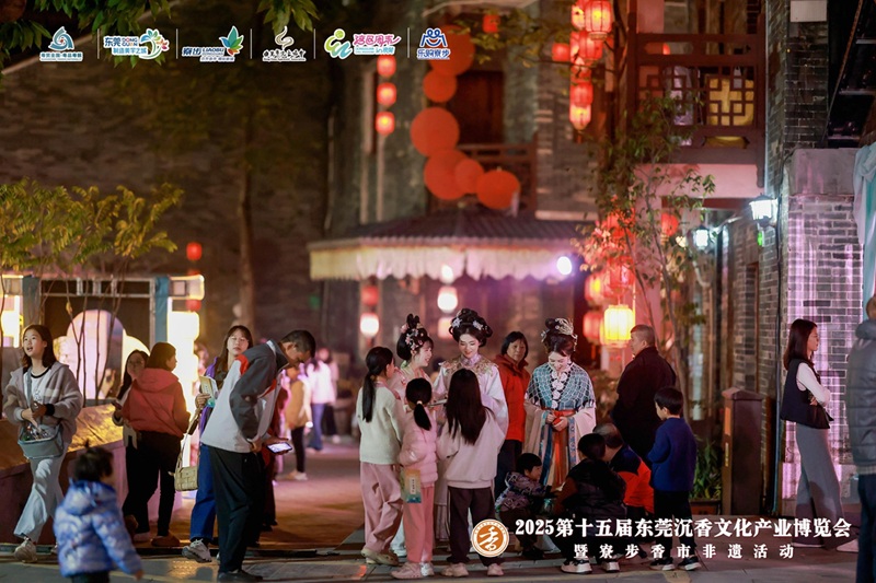 中国沉香文化博物馆紧邻香慧寺。清晨薄雾之中,佛音与莞香相互映照;夜色降临时,牙香街灯影朦胧,古乐回旋,千年香市的骨架在当代城市生活里重新站立。四天时间里,人们在展馆中谈品牌、谈订单、谈标准与溯源;也在古街上闻香、制香、听琴、看舞、参与手作体验——同一缕香气,穿越不同空间与节奏,完成一次产业与文化并行展开的叙事。