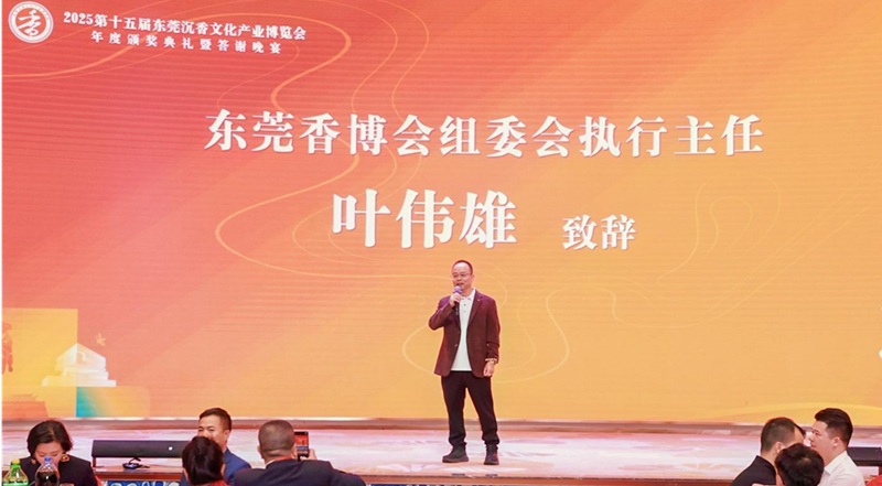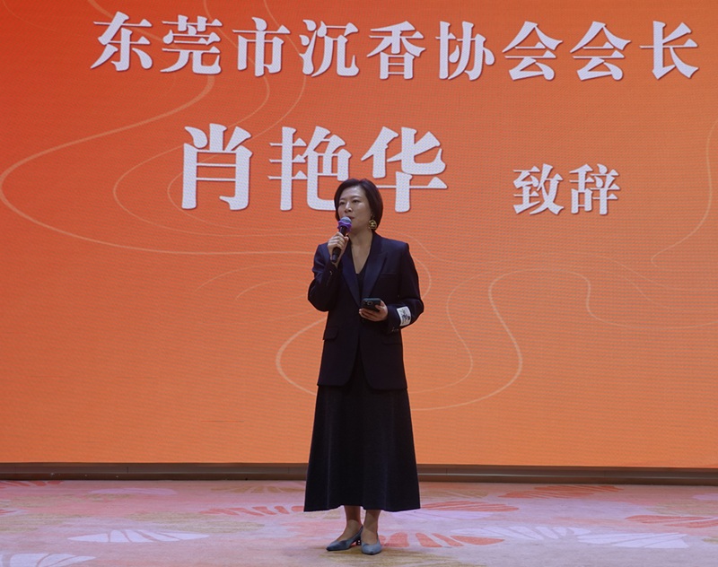 年度颁奖典礼及答谢晚宴上,肖艳华(东莞市沉香协会会长、广东香城集团有限公司总经理)致辞表示,本届香博会取得的阶段性成果,离不开各方的信任、支持与深度参与。她特别感谢市政府和寮步镇政府的持续支持,感谢来自阿联酋、阿曼、埃及、沙特阿拉伯、俄罗斯、韩国等地的国际采购团与专业买家到来,为莞香架起通往世界的桥梁;并向超过 300 家海内外参展企业致谢,正是全产业链珍品的共同呈现,构筑了超过 5 万平方米的展陈体量,为客商打造了“一站式购齐”的平台。她以“莞香一缕,连通天下”作结,表示香博会虽已近尾声,合作与情谊却正开启新的篇章。