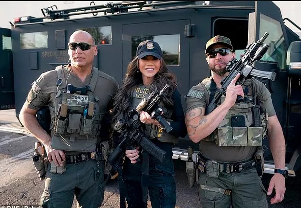 此外,诺姆还因多次拍摄宣传照片而受到批评。一些媒体指出,她在执法行动现场穿着防弹背心、全妆出镜与执法人员合影,甚至被部分评论者称为“ICE Barbie”。